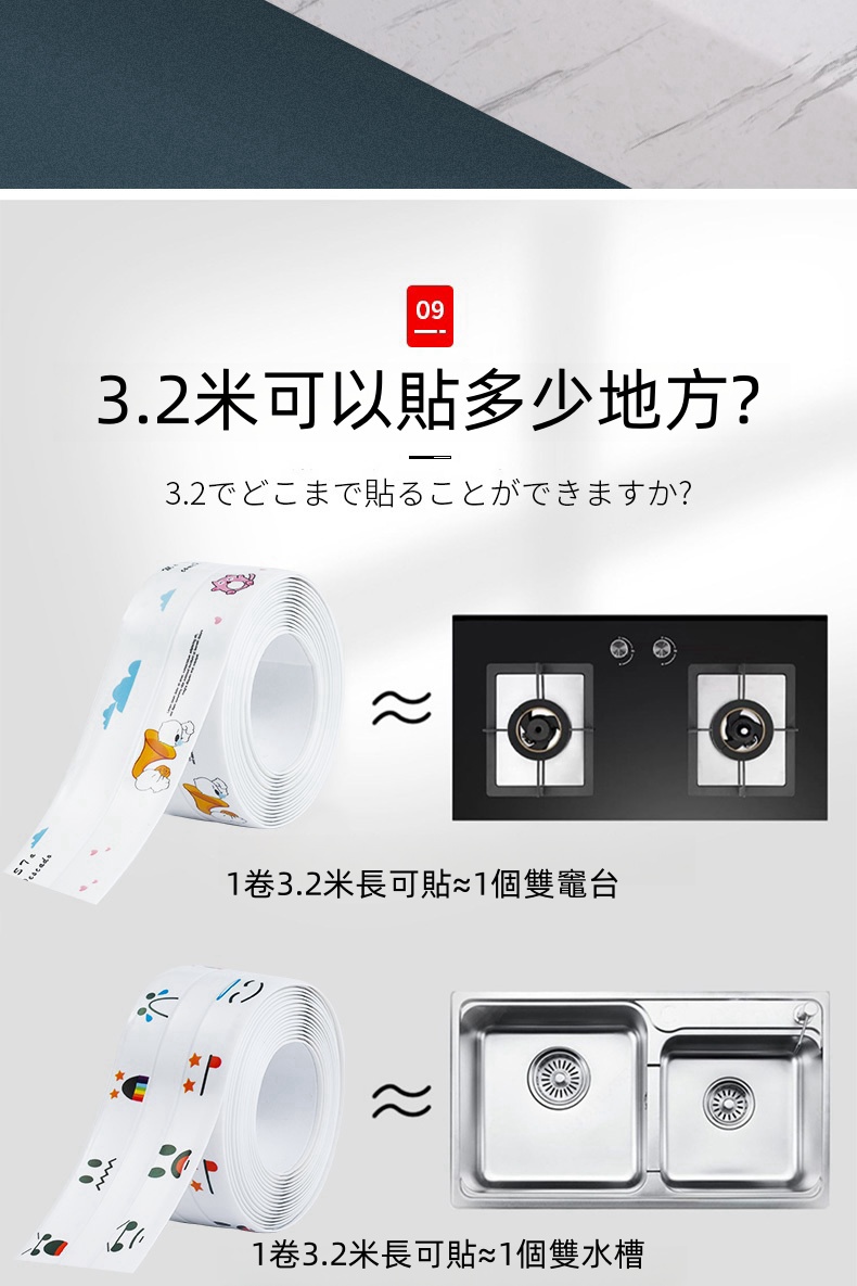 5分鐘前限時搶購 美縫貼防水防霉廚房水槽洗碗灶台封邊擋水條,衛生間馬桶邊緣縫隙貼 - 【嘗鮮價】3入組-NT$980